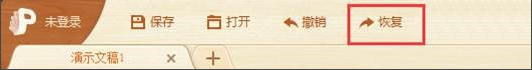 如圖所示,用戶在制作課件中執(zhí)行錯(cuò)誤操作后,可點(diǎn)擊“撤銷”按鈕回到上一操作,“恢復(fù)”則是對(duì)撤銷的恢復(fù)。如:用戶插入一張圖片,點(diǎn)擊“撤銷”按鈕,撤銷圖片的插入,再點(diǎn)擊恢復(fù),恢復(fù)上一撤銷操作,還原所插入的圖片。