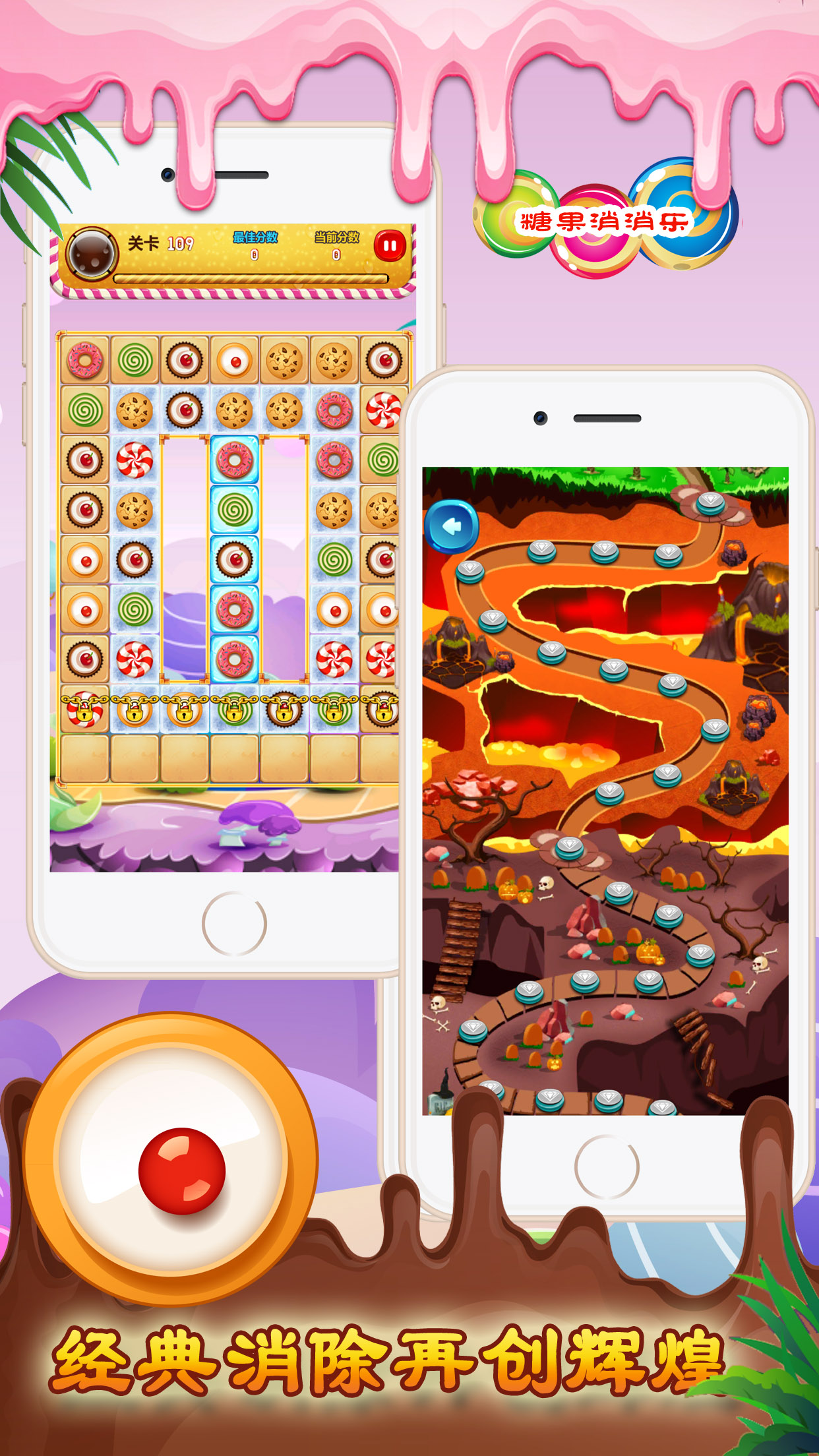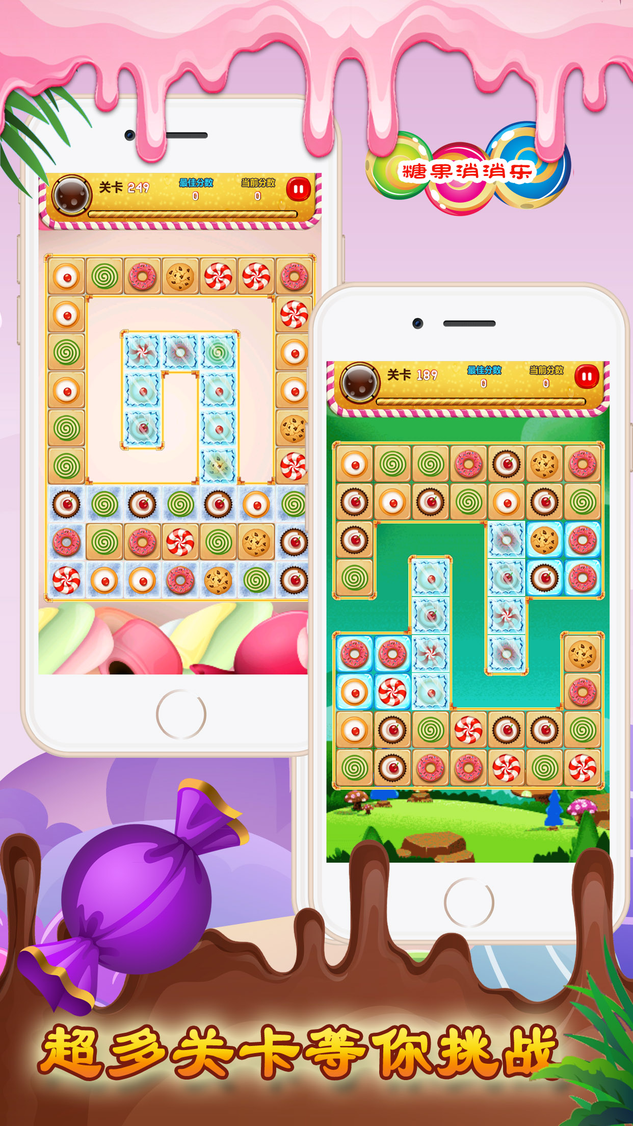 消滅糖果屋消消樂是一款非常有趣的益智消除類手機游戲,游戲畫面清新唯美,操作簡單易上手,玩家只要將三個或者三個以上的糖果相連即可完成消除,當分值達到關卡指定值時即可順利的進入下一關。