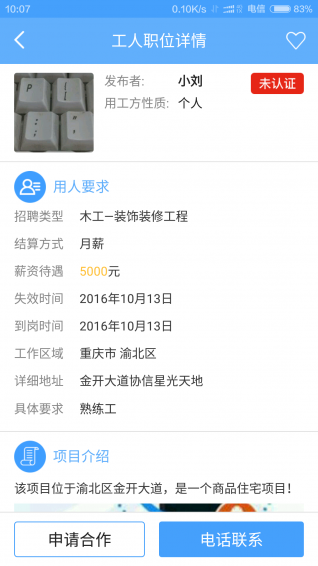 重慶卓特建筑勞務(wù)有限公司建設(shè)的建筑E人平臺(tái)系統(tǒng),是一個(gè)以著真實(shí)有效的信 息交換為基本原則,能幫助農(nóng)民工更好,更方便的找到優(yōu)質(zhì)的用工單位,以及讓 用工單位更直觀的查看人才信息,通過(guò)平臺(tái)能招聘到合適的工人的服務(wù)性平臺(tái)。