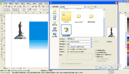 如果是位圖的倒影也是同理的,只是需要先在PS里扣出所需圖形,保存PSD格式的文件,導(dǎo)入到CORELDARW里,再同上述方式使用透明工具即可完成。
