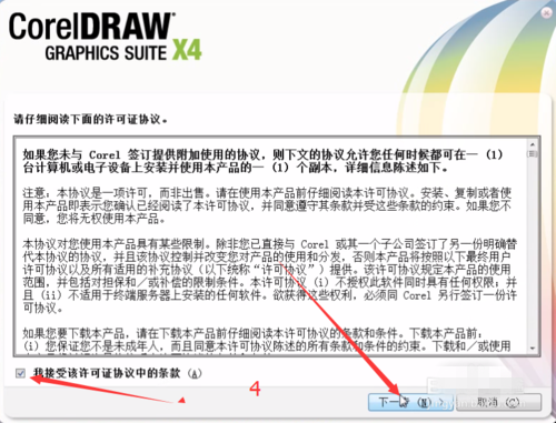 二、點(diǎn)擊接受條款后并點(diǎn)擊下一步。