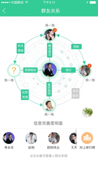 用戶在【】應(yīng)用中填寫自己的資料后,【】應(yīng)用會(huì)基于BPCI(商業(yè)合作潛力指數(shù))商業(yè)算法的基礎(chǔ),為用戶匹配出最有合作潛力的群友,在經(jīng)過(guò)智能篩選后的商業(yè)伙伴,用戶在商業(yè)社交時(shí)更高效、更有價(jià)值。