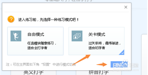 3、綁定完,登錄就成功了,我們點擊新手入門。彈出練習模式供大家選擇,我這里選擇關(guān)卡模式,選擇好之后,點擊確定。