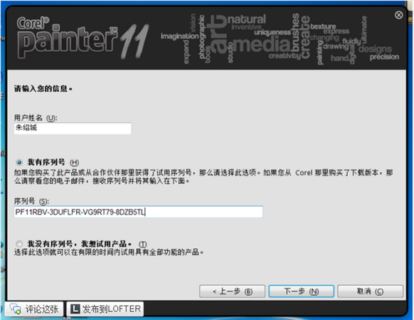 2 安裝painter 11 ,提示你是否有注冊碼,選擇第一個填入剛才生成的代碼。