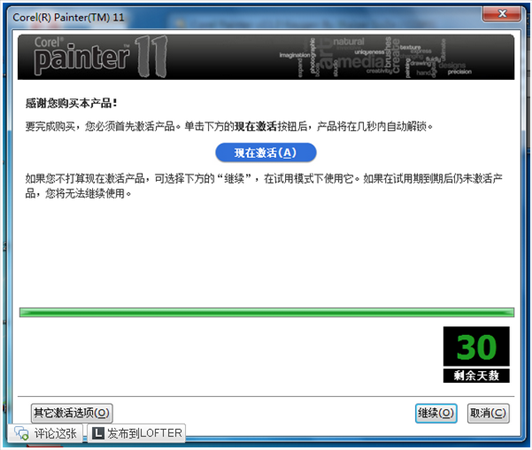 打開Corel Painter 11軟件會彈出激活窗口。點“其它激活選項”按鈕。