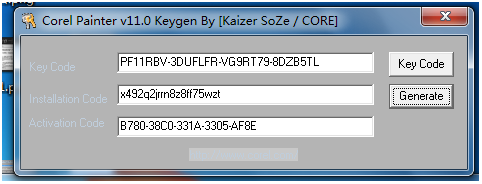 11、這時就要用到我們沒關(guān)閉的Corel Painter 11注冊機(jī)了。把全部的安裝代碼輸入到注冊機(jī)的第二個文本框中,這時點下"Generate"按鈕。就會在最下面的文本框中出現(xiàn)激活代碼了。