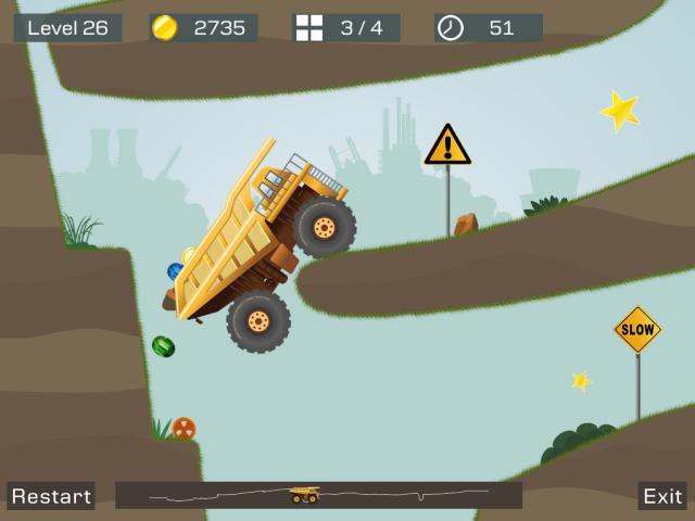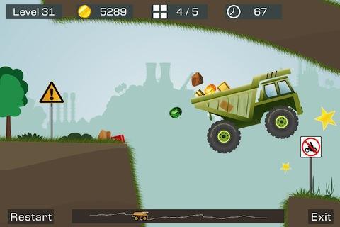 《狂野重卡 Big Truck》是一款簡單的休閑游戲。在崎嶇復雜的道路上將貨物安全運達終點。貨物不能少于關卡要求的數(shù)目,運送的越多,得分越高。你必須小心謹慎。按屏幕的左右來控制卡車的速度。旋轉設備來控制卡車的傾斜角度。車庫里面可以得到你想要的東西。準備好了嗎?出發(fā)!