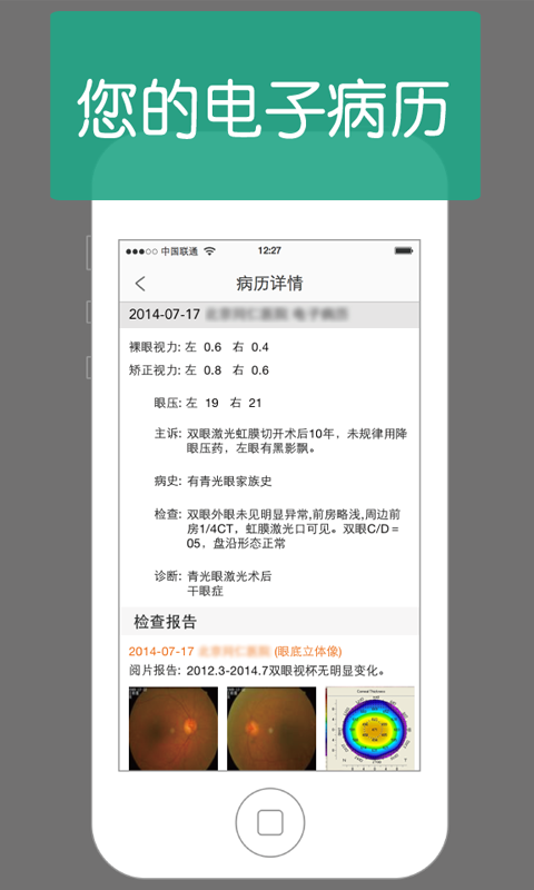 -支持查看眼底照相、OCT、眼前睫、視野計、眼AB超等眼科檢查項目報告;