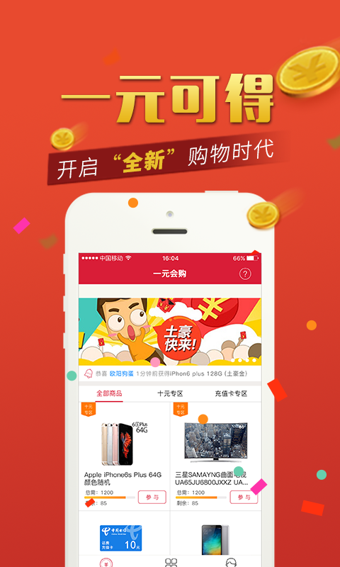 每件商品,一元即可得,人人都有機(jī)會(huì)。