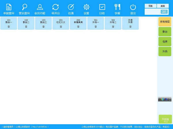 四、軟件支持目前世界上所有的點菜模式:鼠標(biāo)點菜、觸摸屏點菜、無線點菜機、電子菜譜、自助點菜結(jié)算、微信點菜、微信外賣等等,并且支持各種類型的打印機,“廚信通”廚房無紙化顯示菜品信息也完全支持。