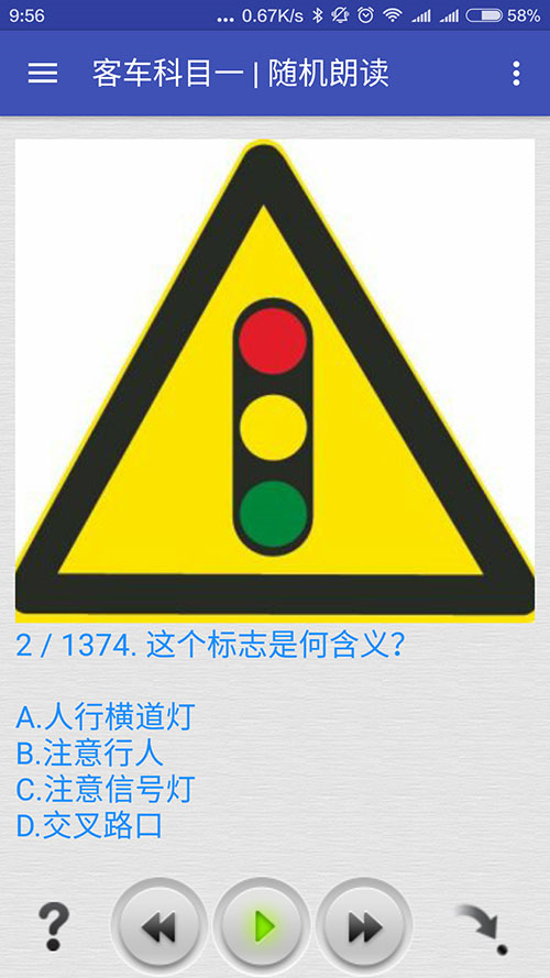 2、客車類科目一理論考試(準(zhǔn)駕車型:A1、A3、B1、N、P):1374題;