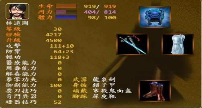 技能系統(tǒng):《金庸群俠傳》中世外高人般存在的南賢北丑,以及孔八拉、林廚子在前傳中將會作為金先生的跟班。他們不直接參與戰(zhàn)斗,卻各懷絕技,對金先生的游歷有決定性的幫助。不過,他們的潛能要靠金先生獲得的技能點來激發(fā)。