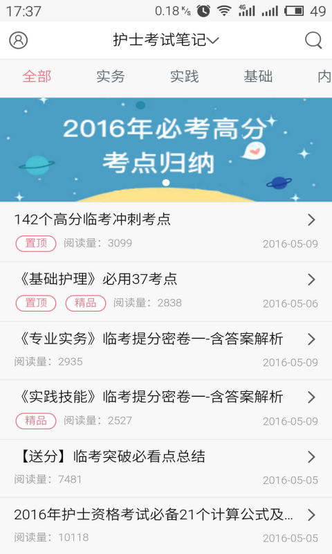 本應(yīng)用有安卓和蘋果兩個(gè)版本,數(shù)據(jù)同步,快捷使用,安裝包極小,界面非常干凈整潔,努力為你的考試提供最強(qiáng)有力的幫助。各大醫(yī)院精英學(xué)霸,集中在本平臺(tái)發(fā)布最優(yōu)質(zhì)精良的考試筆記大餐,祝大家考試順利!