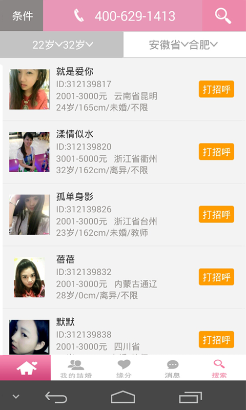 新婚網(wǎng)致力于向廣大戀愛年齡的朋友提供優(yōu)質(zhì)的婚戀服務(wù),通過廣闊的互聯(lián)網(wǎng)平臺和技術(shù)幫助您在茫茫人海中尋覓到與您共度今生的另一半。在新婚網(wǎng)的價值觀中,互聯(lián)網(wǎng)為中國的年青一代在交友戀愛中提供了無限廣闊的空間,甚至推動人們戀愛行為的改變,與傳統(tǒng)的擇偶方式相比,通過互聯(lián)網(wǎng)擇偶具有無與倫比的優(yōu)勢。【軟件特色】