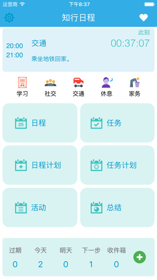 知行日程app讓您看到時間都去哪了,掌握自己的效率高峰時間,了解自己的行為習(xí)慣。時間記錄將會由負(fù)擔(dān)變成樂趣。知行日程app幫助您輕松掌握自己的時間與任務(wù)。