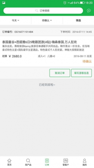 掌旅通app主要包含首頁推薦、產(chǎn)品索引、篩選產(chǎn)品、分享產(chǎn)品、客人下單、訂單狀態(tài)、訂單支付、填寫/申請打印合同、申請發(fā)票、充值等功能。