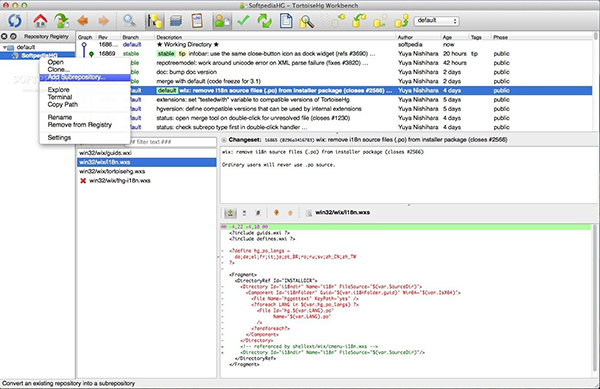 最重要的是,TortoiseHg使您輕松瀏覽多個本地庫,進行數(shù)據(jù)查詢,提交提交,以及負載和預覽所有現(xiàn)有文件的修訂。