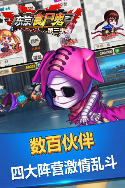 東京食尸鬼第三季手游是一款A(yù)RPG手游,游戲有著最Q版的畫風(fēng),最經(jīng)典的劇情,強(qiáng)大合擊技能,四大陣營即將激情對(duì)戰(zhàn),還不快來加入!東京食尸鬼粉絲的福利到了!2016年最好玩的手游《東京食尸鬼第三季》正式開測(cè)啦!小伙伴們看完《東京食尸鬼》,是否覺得蕩氣回腸,意猶未盡呢?想知道后面的故事嗎?那就來玩《東京食尸鬼第三季》手游吧!