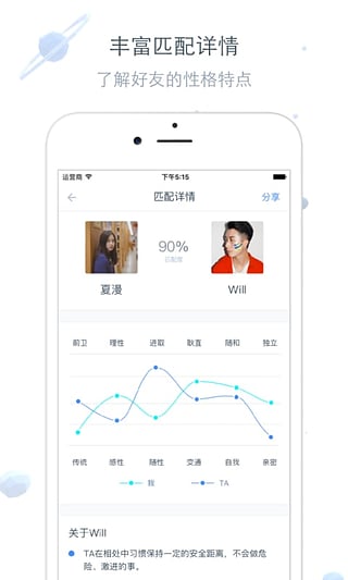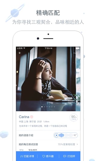 如故app是一款為你尋找soulmate的手機(jī)應(yīng)用。如故app通過眾多社會心理學(xué)家研究打造的K-TES測試、最優(yōu)匹配算法、以及更多有趣的題目能讓用戶進(jìn)行更深層次的精神交流,找到和自己三觀契合,品味相近的朋友。你一個(gè)人吃飯旅行,到處走走停停,也一個(gè)人看書寫信,自己對話談心。