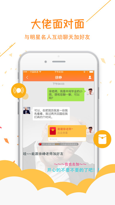 -海量真實投資人、制片人、導演、演員、音樂人、模特、經(jīng)紀人、記者、媒體、商務(wù)資源!-與明星大佬實時互動聊天!