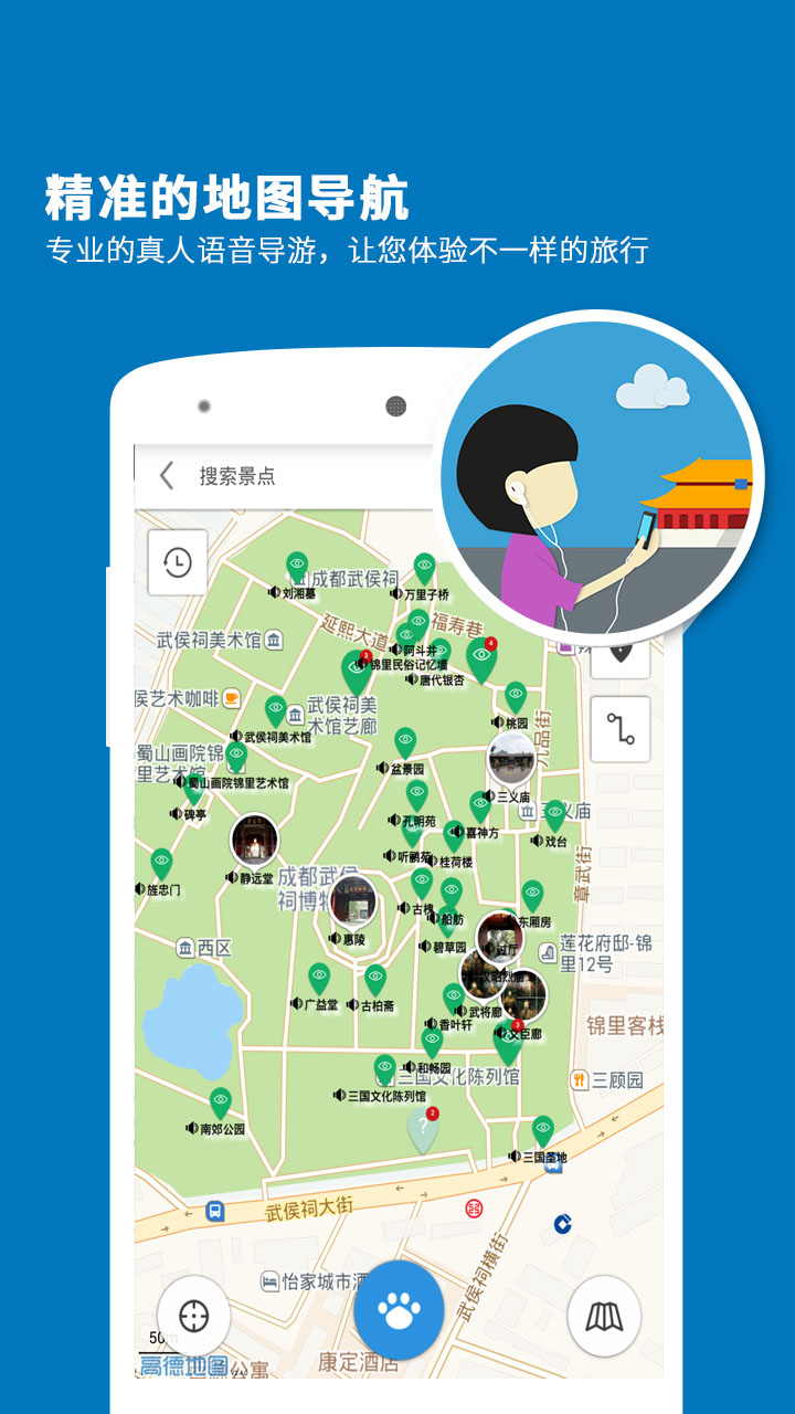 聽游天下——武侯祠導(dǎo)游:專業(yè)的智能語音導(dǎo)游系統(tǒng),專為喜歡自由行的旅行愛好者而設(shè)計。攜手科大訊飛,帶給您獨特的成都武侯祠印象。