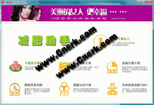 減肥助手 V3.0 簡體中文綠色免費版 減肥助手是一款免費的共享軟件,它能根據(jù)您的身高、體重判斷您的體型是否正常,來判斷您是否需要進行減肥。包括卡路里計算器、標準體重計算、基礎代謝計算、健康體重范圍計算、燃脂運動計算、身體質量指數(shù)計算。在設置好了您的身高、性別、年齡后,您需要到食品熱量選項卡里面,設置您喜歡的食物每天進入減肥計劃,輸入您當天的體重,幫助您實現(xiàn)減肥的夢想。