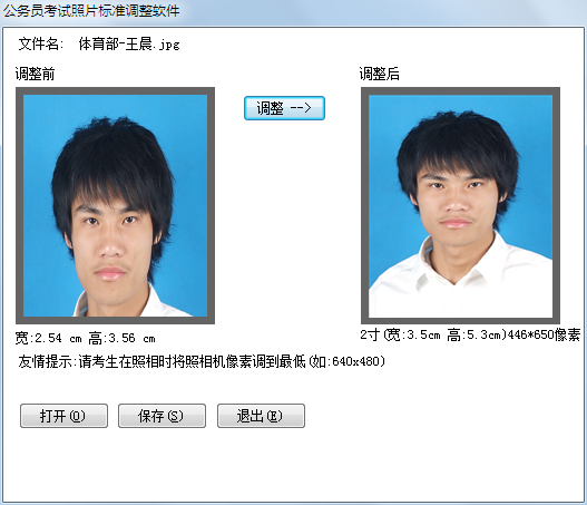 這里是有兩個軟件,一寸照片生成器,和公務(wù)員考試照片標(biāo)準調(diào)整軟件(2寸照片生成器),雖然不能對照片做些美化功能,卻勝在簡單,可以不需要照片處理技巧就很快的轉(zhuǎn)換了,把你的相片修改成1寸和2寸的大小。