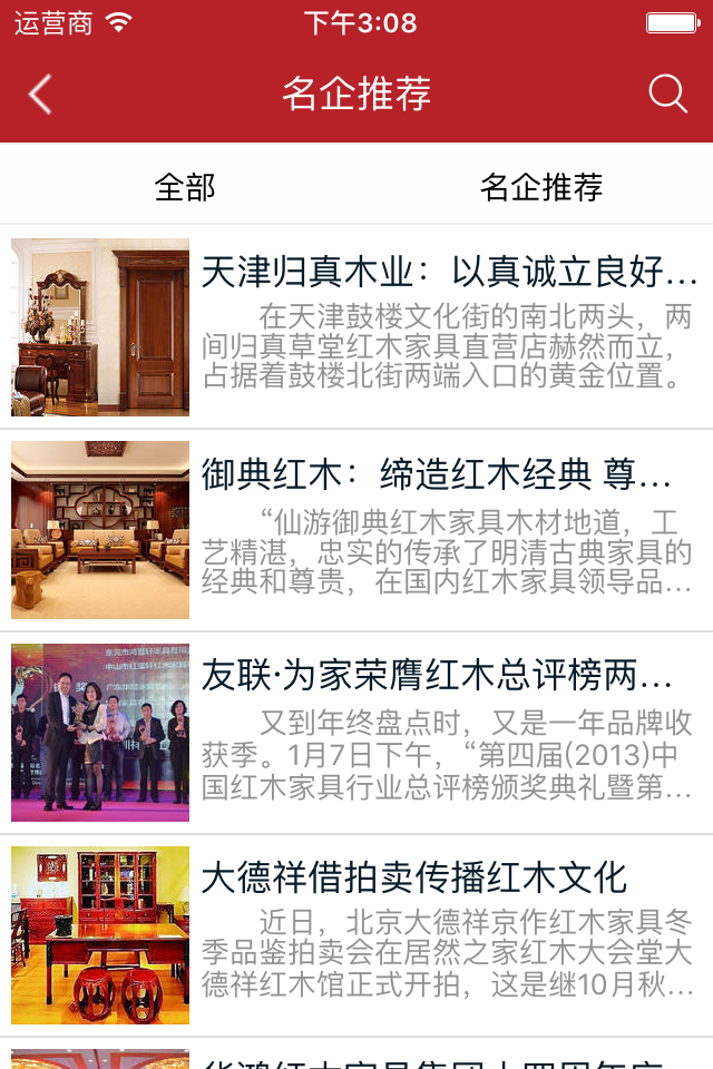 紅木家具批發(fā)網(wǎng)APP是專業(yè)的紅木家具網(wǎng)上商場,紅木家具批發(fā)網(wǎng)商品包括:紅木家具知識,價格走勢,紅木家具廠品牌推薦、等數(shù)萬種商品直銷, 便捷,誠信的服務,紅木家具批發(fā)網(wǎng)為您提供方便快捷的購物。