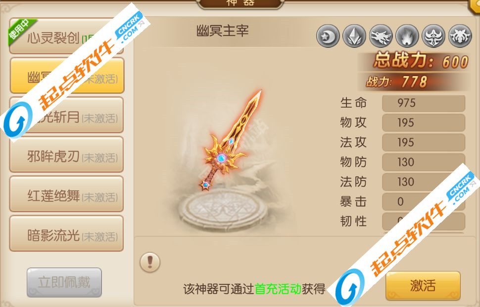2.幽冥主宰:該神器可以通過首充活動獲得。