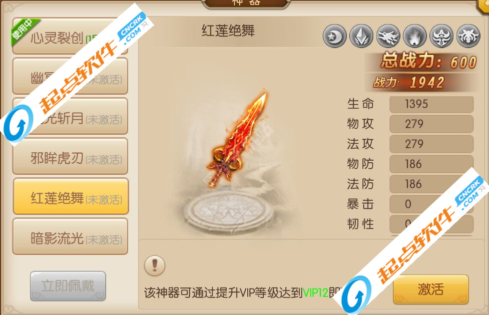 3.流光斬月:該神器可以通過提升VIP等級達(dá)到VIP5即可獲得。