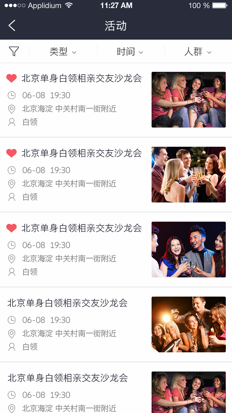 婚戀圈app是一款混你按交友應(yīng)用,婚戀圈app為用戶打造一個(gè)便捷的單身交友平臺,用戶可以通過軟件認(rèn)識更多單身異性,為用戶婚戀交友提供方便。婚戀圈——高品質(zhì)單身交友活動(dòng)發(fā)布和團(tuán)報(bào)平臺。線下活動(dòng)組織者將單身交友活動(dòng)發(fā)布在本平臺上,單身的用戶可以按時(shí)間、地點(diǎn)、人群、場地等條件篩選出匹配的單身交友活動(dòng),可以是一次美女如云的單身趴,也可以是一次帥哥云集的單身戶外游。