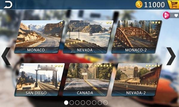 點擊左右按鈕,或者傾斜手機,控制賽車左右移動;點擊剎車按鈕進行減速,配合方向按鈕可以進行高難度漂移;
