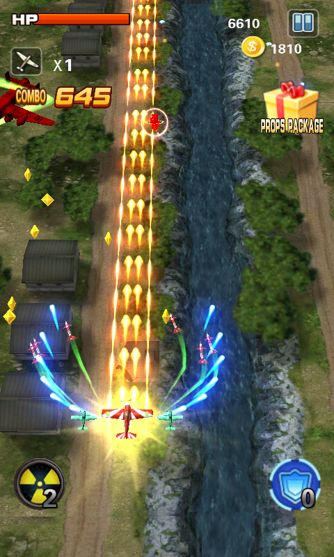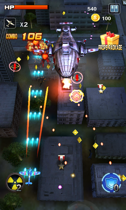 《空海戰(zhàn)爭(zhēng)》是一款非常好玩的飛行射擊類游戲。與傳統(tǒng)的飛行游戲相同,游戲采用豎屏飛行的模式。當(dāng)然,這也是常規(guī)的游戲方式,但是游戲富有創(chuàng)造性的加入了第三與*人稱視角。玩法很簡(jiǎn)單,手指在屏幕上劃到哪里,飛機(jī)則飛到哪里。除去我們可以控制飛行以外,屏幕左右兩側(cè)均包含一定數(shù)量的道具輔助,分別用于攻擊、延時(shí)、以及投擲炸彈等攻擊方式。本作操作簡(jiǎn)單易上手,還可以通過(guò)特殊道具來(lái)幫助我們渡過(guò)難關(guān)。在本作中我們還可以在商店中購(gòu)買到不同種類的飛機(jī),其中每架飛機(jī)都有自己的屬性和彈道方式。從常識(shí)角度來(lái)理解,花費(fèi)(或者鉆石)金幣越多的飛機(jī)攻擊和防御則會(huì)越高。本游戲提供兩種模式,一個(gè)是戰(zhàn)役模式,另一個(gè)則是無(wú)盡模式,戰(zhàn)役模式就是我們俗稱的關(guān)卡副本,每個(gè)關(guān)卡需要完成不同任務(wù)才可以順利通關(guān)(摧毀多少房屋,擊落多少飛機(jī)等);而無(wú)盡模式則是考驗(yàn)我們的反應(yīng)能力,想盡一切辦法存活下來(lái),時(shí)間越久則獲得的分?jǐn)?shù)也就越多。