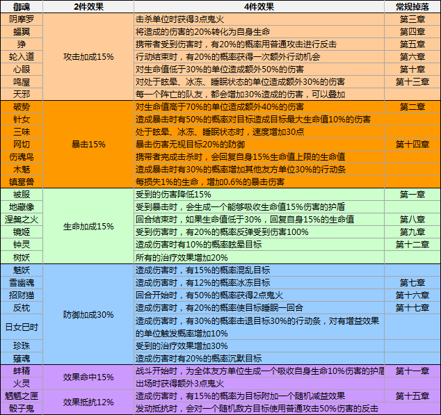 御魂套裝效果及掉落地點(diǎn):