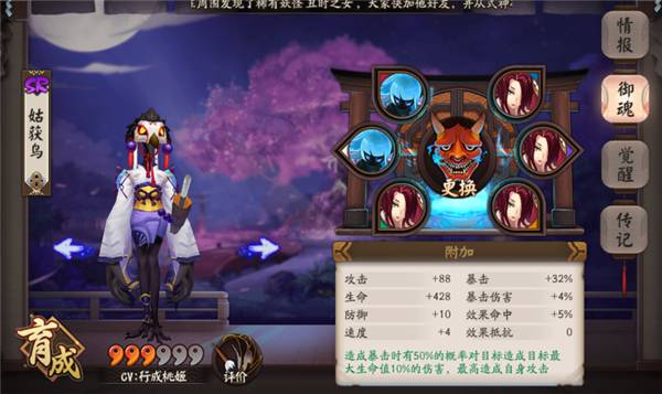 姑獲鳥:4針女+2暴擊,速度攻擊暴擊都是可選屬性,暴擊優(yōu)于攻擊。
