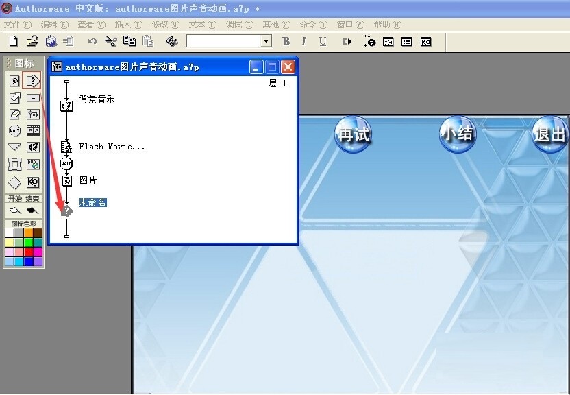 1、打開Authorware軟件,將在前面經(jīng)驗(yàn)里介紹制作的“Authorware圖片聲音動(dòng)畫”打開;