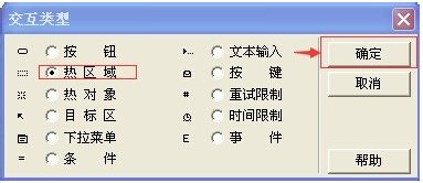 4、出現(xiàn)很多交互類型,今天我們選熱區(qū)域交互,按確定;