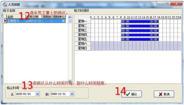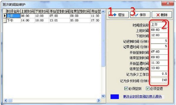 4、設(shè)置班次時(shí)間段(進(jìn)入班次時(shí)間段維護(hù))