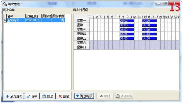 5、設(shè)置班次(進(jìn)入班次管理)