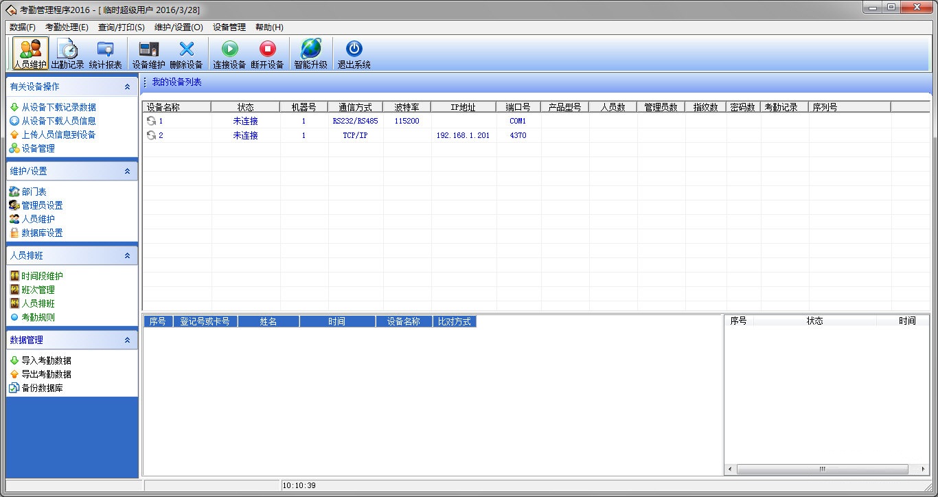 7、將設(shè)備上的考勤數(shù)據(jù)下載至軟件中(連接設(shè)備-從設(shè)備下載記錄數(shù)據(jù))