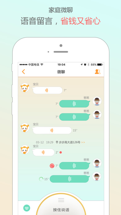 手表和app之間可以相互發(fā)送語音信息,實現(xiàn)孩子與家長之間一種新的溝通方式。除此之外,app端還可以發(fā)送微聊文本給手表,微聊溝通多樣化。