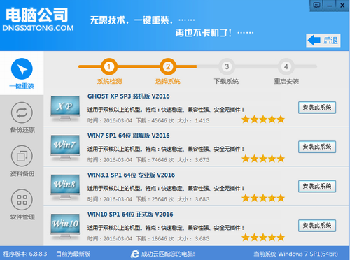 2、軟件自動檢測電腦軟硬件環(huán)境以及電腦網(wǎng)絡連通狀態(tài)后,進行系統(tǒng)選擇,完成后點擊“安裝此系統(tǒng)”按鈕