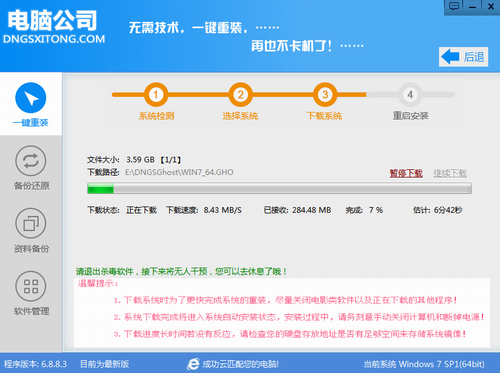 3、選擇完成系統(tǒng)后,無憂會自動下載對應系統(tǒng)進行下載。下載完成后,電腦將會自動重啟電腦