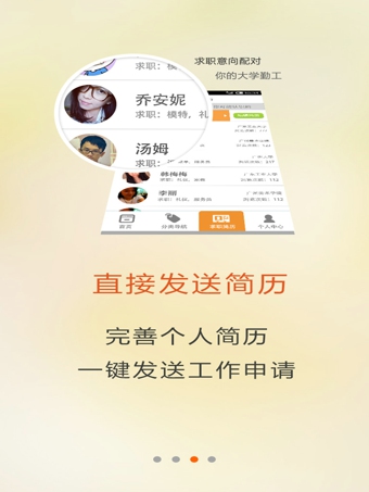 大學(xué)生的你:學(xué)而時踐之,不亦說乎!兼職貓兼職信息豐富,涵蓋了服務(wù),教育、娛樂、文化、藝術(shù)、旅游等多元行業(yè)。你可以在宿舍辦公,也可以靠玩游戲賺錢。通過兼職,你將可以將你的時間,技能,想法進行交易,兌換成金錢,經(jīng)驗和技能!工作中的你:也許你不滿足“專一職業(yè)”的生活方式,也許你想在工作之余增加多一份收入,也許你想多學(xué)習(xí)一門技能來提升自我,那么兼職貓將是適合你的平臺,你將在工作的過程中發(fā)現(xiàn)自己的興趣和長處,提升自己!