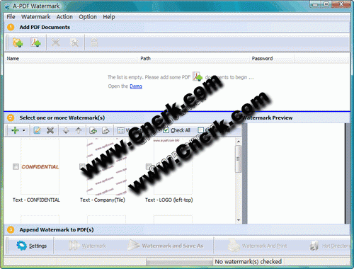 A-PDF Watermark是一個(gè)非常強(qiáng)大的PDF水印工具,可以批量為PDF文件添加文本或圖片水印,如文件名、公司名、簽名、產(chǎn)品圖片,從而保護(hù)PDF文件。A-PDF Watermark也支持為PDF文件添加標(biāo)記信息,如日期時(shí)間、頁(yè)碼、作者