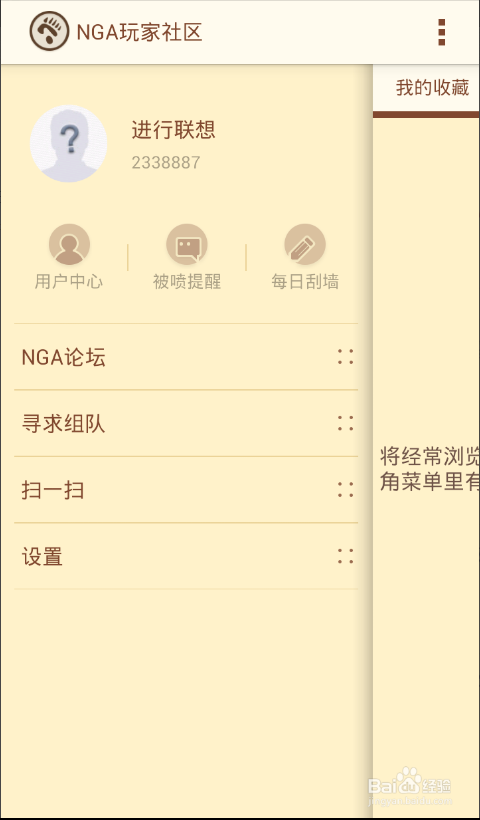 首先在nga玩家社區(qū)找到關于你的賬號信息的地方,然后這里有一個選項是用戶中心,點擊用戶中心,前提是你在登陸的情況下。