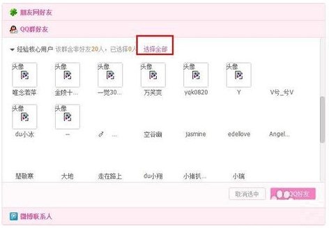 4、選擇一個(gè)qq群,然后點(diǎn)擊“選擇全部”