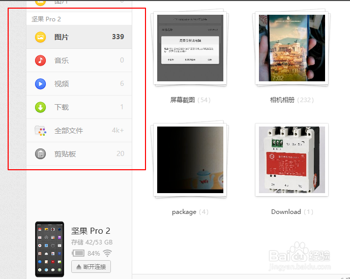 我們點(diǎn)擊界面中搜索出來的設(shè)備,點(diǎn)擊連接,這時(shí)我們就可以在電腦上查看或編輯上的圖片,文檔,音樂等文件了。