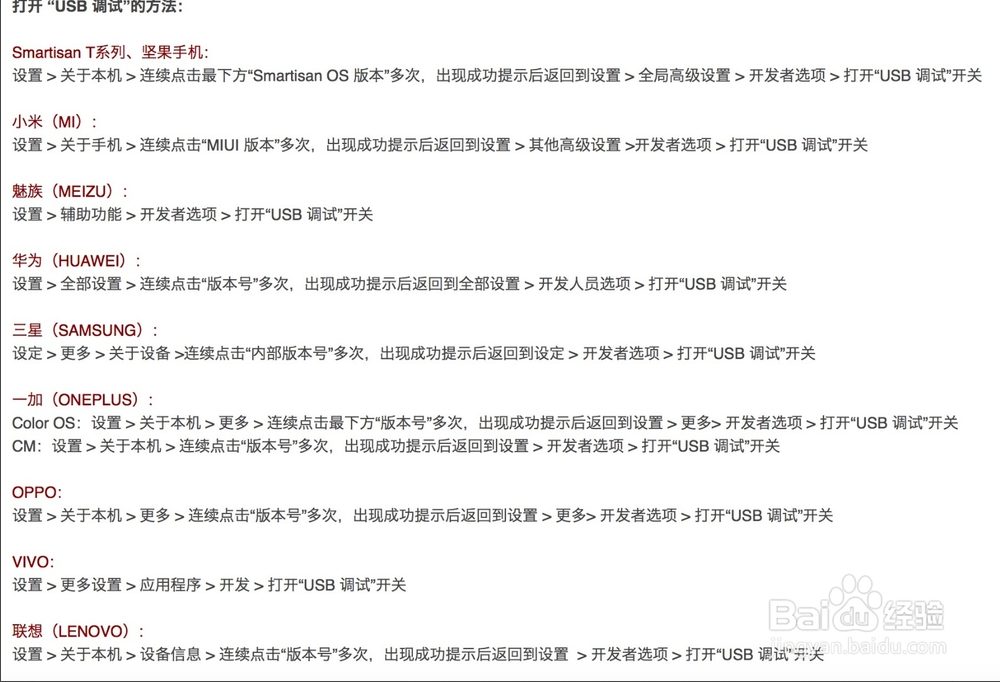 2、確認(rèn)已經(jīng)打開了“USB 調(diào)試”,打開方法見上方。