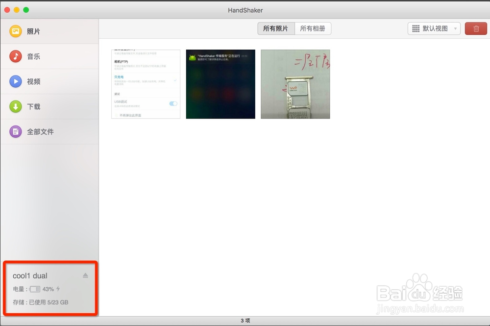 無需提前啟動(dòng)軟件,安卓手機(jī)連接數(shù)據(jù)線后,使用數(shù)據(jù)線插入mac即可快速啟動(dòng)HandShaker;